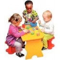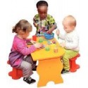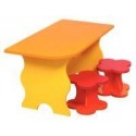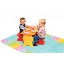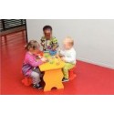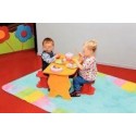 Coin repas table en bois orange + 2 tabourets. Comprend 1 table orange et 2 tabourets rouges en forme de fleurs. Réalisé en contreplaqué de bouleau naturel et laqué aux couleurs vives. Livré monté. Ce meuble s''associe parfaitement avec la cuisinière (23236), le meuble évier (23237), le bloc lingerie (23238) et le réfrigérateur (23239), dos à dos ou tout en longueur. Dimensions de la table : L 62 x l 37 x H 37 cm. Dimensions des tabourets : 23 x 23 x 18 cm. Dès 10 mois.