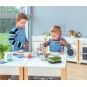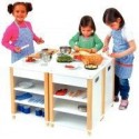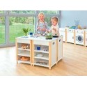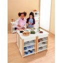 Desserte de rangement pour cuisine. Structure en bois d''hévéa laqué blanc et MDF robuste. Complément indispensable à la cuisine équipée code 20877. Les 2 étagères fournissent beaucoup d''espace de rangement. Qualité de fabrication qui confère résistance et durabilité pour un usage intensif en collectivités. Dimensions du bloc (L x l x H) : 40 x 34 x 53 cm. Meuble à monter soi-même. 2 poignées intégrées pour faciliter le transport. Dès 2 ans.