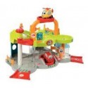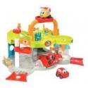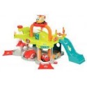 Premier garage mini bolides. Garage très complet qui offre de nombreuses activités : 1 héliport, 1 station de lavage tournante, 1 rampe de descente, 1 ascenseur avec poignée qui permet à la voiture de redescendre toute seule, des barrières signalétiques... Réalisé en plastique résistant, aux couleurs vives. Livré avec 1 voiture et 1 hélicoptère. A monter soi-même. Dimensions du garage (L x l x H): 56 x 29 x 32 cm. Dès 18 mois.