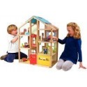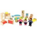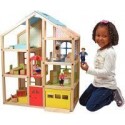 Maxi maison de poupées meublée, hauteur 76 cm. En bois, de très belle qualité et idéal pour les collectivités. Les côtés de la maison sont ouverts pour faciliter l''accès aux pièces et pour que les enfants puissent jouer à plusieurs. Maison composée de 3 étages : 4 pièces avec fenêtres et 2 mezzanines avec ascenseur et garage. Livrée avec son mobilier (15 pièces) : salon, salle à manger, cuisine, chambre à coucher et salle de bain et 3 personnages (2 adultes et 1 enfant). Poignée sur le toit pour faciliter le transport. A monter soi-même. Dimensions (L x l x H): 60 x 33 x 76 cm. Dès 3 ans.