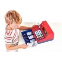 Caisse enregistreuse. En plastique robuste. Avec effets sonores comme une véritable caisse enregistreuse (bips touches et ouverture de tiroir). Fonction calculatrice avec grand affichage numérique et larges touches adaptés aux plus petits. Le tiroir s''ouvre pour ranger la monnaie factice en euros livrée avec la caisse (24 pièces et 20 billets). Livré avec une carte de crédit, un bloc-notes et un guide d''activités. Calculatrice solaire. Dimensions : L. 26,5 x l. 24 x H. 15 cm. Dès 3 ans.