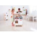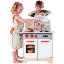 Combiné cuisine gourmet en bois blanc. En bois massif naturel et coloré. Ensemble composé d''un évier, de 2 plaques de cuisson, d''un four, d''une étagère et d''un placard de rangement sous l’évier. Livré sans ustensiles, à monter soi-même. Dimensions (L x l x H): 55 x 32 x 70,5 cm. Hauteur du plan de travail: 50 cm. Dès 3 ans.