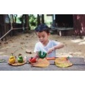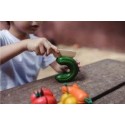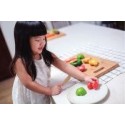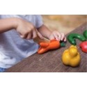 Lot de 5 fruits et légumes « moches » en bois . 1 couteau et 5 fruits et légumes à scratch qui se coupent en deux et se reconstituent facilement : poire (L.5,5 x H.6 cm), pomme, carotte (L.11 cm), tomate et concombre. Les légumes dont la forme est irrégulière ont les mêmes qualités gustatives que les beaux légumes. Consommer des légumes "moches" c''est participer à la réduction du gaspillage alimentaire. Dès 18 mois.