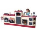 Meuble de cuisine en bois. Ce bloc de cuisine réalisé en bouleau naturel est constitué d''un évier avec robinet et bassine, d''un meuble de rangement avec 2 tiroirs et 1 étagère, d''une gazinière avec plaque de cuisson et d''un four. Meuble avec plinthe comme les vrais meubles. Dessus et plinthes laquées rose, portes gris métal. A monter soi même. Dimensions (L x P x H) : 80 x 39,5 x 61,5 cm. Dès 3 ans.