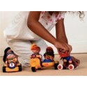 Lot de 3 véhicules et 4 personnages TOLO. 3 véhicules à roues mobiles (1 skate, 1 formule 1, 1 side-car) et 4 personnages interchangeables en plastique très résistant 100% recyclable. La tête et les membres des personnages sont articulés. Sur le ventre des personnages se trouve un bouton sonore. Permet aux enfants de développer leur imagination en s''impliquant dans des jeux de rôle. Version non électrique. Hauteur des personnages : 12 cm. Dimensions du side-car (L x l x H) : 20 x 15 x 17 cm. Dès 12 mois.