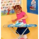 Planche à repasser. Pliable, avec plateau en bois et structure en métal. Dimensions du plateau : L.62 x l.21 cm. Réglable en hauteur 56, 60 et 62 cm. Dès 3 ans.