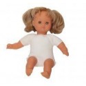 Poupon avec cheveux au corps souple, Fille type européen hauteur 30cm. Poupon ethnique. Les membres sont réalisés en vinyle souple de grande qualité et agréable au toucher, le corps est en tissu et la tête est articulée. Facilement manipulable pour les plus petits. Lavable en machine sur programme délicat à 30°C dans une taie d''oreiller pour ne pas abimer le plastique.