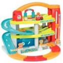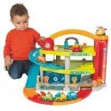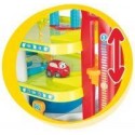 Grand garage pour mini bolides. Grand garage 1er âge sur 3 niveaux très complet et ultra résistant conçu pour 1 ou plusieurs enfants à partir de 18 mois. Ce grand garage est équipé d''un ascenseur, d''une station de lavage, d''une bascule et d''une rampe permettant aux mini bolides de dévaler les 3 étages! Une trappe secrète permet de faire disparaître les mini bolides directement dans le bac de rangement où peuvent également être stockés la piste et les accessoires. Poignée de transport intégrée pour rangement facile. Livré avec 1 mini bolide et 4 pistes à assembler. Dimensions (L x l x H): 62 x 60 x 43 cm. Dès 18 mois.