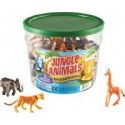 Baril de 60 animaux de la jungle. Figurines en plastique souple, coloré, détaillé et peint à la main. Livrées dans un baril de rangement en plastique avec couvercle. Ces petits animaux permettent à la fois de jouer ou d''organiser des exercices de tri, de comptage et de reconnaissances. Hauteur de l''éléphant : 5 cm. Dès 3 ans.