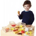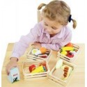 Groupes alimentaires en bois. 4 cagettes contenant 17 aliments en bois à trier selon 4 groupes alimentaires représentés : les produits laitiers, les fruits et légumes, le pain et autres glucides, les protéines. Pour apprendre les bases d''une alimentation équilibrée dès le plus jeune âge. Dimensions d’une cagette en bois : L.15,5 x l.11 x H.6 cm. Dès 2 ans.