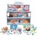 Centre de soins vétérinaire en bois. Espace de jeu en bois 2 en 1 avec une face clinique vétérinaire et une face salon de toilettage. Comprend de nombreux espaces de rangement, quelques équipements : 1 loupe à rayons X , 1 balance, 1 tensiomètre, 1 lavabo avec douchette, 1 distributeur de croquettes, plusieurs crochets et porte-accessoires. Accessoires vendus séparément. matériel de soins 85854 et caisse de transport 85855. Les enfants prendront plaisir à jouer au vétérinaire, examiner, soigner et choyer leurs animaux en peluches. Développe le vocabulaire, l’imagination et la capacité d’empathie. A monter soi-même. Dimensions : L.70 x l.50 x H.90 cm. Dès 3 ans.