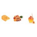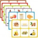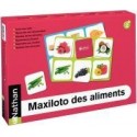 Maxiloto aliments. Un premier jeu de loto pour s’approprier le vocabulaire de l’alimentation. Chaque catégorie alimentaire est représentée par une planche : Fruits et légumes, Céréales et produits dérivés, Produits laitiers, Viandes, poissons et oeufs, Matières grasses, Épices et aromates. Les enfants apprennent à nommer les aliments et appréhendent les règles de nutrition. • La boîte contient : 6 planches de loto, 36 jetons en carton. • L/l planche : 33 x 22,7 cm. • Côté jeton : 10 cm. Dès 2 ans.