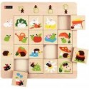 LUDITAB repérage dans l''espace. Un puzzle pour aborder de façon ludique les premières notions de repérage spatial : devant/derrière, dessus/dessous. • 16 pièces et 1 socle en bois verni. • L/l/ép. socle : 21 x 21 x 0,7 cm L/l/ép. pièce : 4 x 4 x 0,4 cm. PLUS PRODUIT Cadre contour pour maintenir les pièces en place. Dès 3 ans.