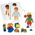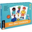 Jeu des couleurs. Un jeu magnétique pour apprendre à respecter des consignes. Librement, ou selon la consigne donnée par les dés (couleur, vêtement), il s’agit d’habiller les 6 personnages des planches avec des vêtements et des accessoires de 6 couleurs différentes. La boîte contient : 6 planches en carton fort pelliculé 36 vêtements et accessoires en carton magnétique (casquette, chemises, shorts, baskets, ballons) 2 dés en bois et 1 règle du jeu. • L/l planche : 31 x 19 cm. • Arête dé : 2,5 cm. Dès 3 ans.