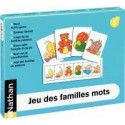 Jeu des familles mots. Cet atelier d’entraînement propose une variante du jeu des 7 familles pour amener les enfants à construire oralement des phrases simples et à se faire comprendre. Pour réunir les 6 cartes illustrées sur la bande-consigne, l’enfant doit les demander et les décrire une à une de manière précise, en se faisant comprendre des autres. Les regroupements sur les bandes consignes se font à partir de deux éléments linguistiques (sujet, verbe) auxquels s’ajoute un critère de couleur. La boîte contient : • 36 cartes illustrées en couleurs (12 x 8 cm). • 18 bandes-consignes. • 1 livret pédagogique. Dès 5 ans.
