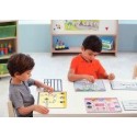 Atelier des mots croisés. Auteur : Françoise Eriksen - Enseignante référente de scolarité et ancienne formatrice en ÉSPÉ. Cet atelier d’entraînement a pour objectif de familiariser les enfants avec l’écrit et de leur faire découvrir le principe alphabétique, de manière à pouvoir aborder avec plus d’aisance l’apprentissage de la lecture. Les enfants remplissent les grilles de mots croisés avec les lettres magnétiques en s’aidant des mots illustrés et des lettres indices, comme dans une situation problème. Ils s’entraînent à dénombrer les lettres dans un mot, à comparer la longueur des mots, à repérer la place d’une lettre dans un mot, à repérer des lettres identiques. La boîte contient : • 24 fiches d’activités réparties en 4 séries de 6 fiches (25 x 20 cm). • 104 lettres capitales d’imprimerie en carton magnétique (côté : 2,3 cm). • 2 supports métalliques (25,5 x 20,5 cm). • 1 planche en carton magnétique (25 x 22 cm). • 1 livret pédagogique. Dès 5 ans.