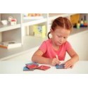 Pistes graphiques lettres capitales. Ces supports en bois épais favorisent la reconnaissance des 26 lettres de l’alphabet par le toucher en creux. Les enfants développent leur sensibilité tactile et la mémorisation des gestes de l’écriture. Ils peuvent classer les consonnes (en bleu) et les voyelles (en rouge) selon la couleur. Les lettres se rangent verticalement dans la boîte. L’activité peut également être réalisée avec des stylets (vendus séparément) pour une approche complémentaire, au toucher, de la reconnaissance des lettres. • En bois verni. • L/l/ép. d’une lettre : 7,4 x 7,4 x 1 cm. Dès 2 ans.