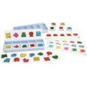 Atelier de tris. Un atelier d’entraînement conçu pour les premières activités de tri, de logique et de mise en correspondance terme à terme. Il permet d’aborder les notions de propriétés et de relations dans un ensemble. Par la manipulation de jetons illustrés représentant des objets de 10 formes et de 10 couleurs différentes, les enfants vont s’entraîner à organiser l’information selon des critères donnés sur les fiches. • La boîte contient : • 34 fiches d’activités réparties en 5 séries (25,5 x 8,5 cm). • 50 jetons illustrés en carton ( 5,5 x 4,5 cm). • 2 boîtes de tri en plastique (27 x 12 cm). • 1 livret pédagogique. Dès 2 ans.