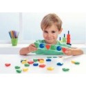 Jeu LOGICOLOREDO. Cet atelier d’entraînement propose des activités de logique sur les couleurs et les formes pour aborder les premières notions d’algorithme et de rythme. L’enfant emboîte des pions de 3 formes et de 4 couleurs différentes sur une réglette transparente à 6 plots, en respectant les consignes des fiches d’activités à placer sous ou à côté de la réglette. Les réglettes se clipsent entre elles pour des rythmes plus complexes. La boîte contient : • 30 fiches d’activités : 5 séries de 6 fiches (23 x 4 cm). • 2 réglettes en plastique transparent à 6 plots (23 x 4 cm). • 36 pions en plastique : 3 formes et 4 couleurs (Ø : 3,3 cm). • 1 livret pédagogique. Dès 3 ans.
