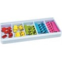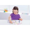 Atelier longueurs en couleurs. Contient: 24 fiches d''activités réparties en 6 séries de 4 fiches (29 x 14 cm), 2 supports métalliques (30 x 15 cm), 100 réglettes magnétiques de couleurs et de longueurs différentes, 1 guide pédagogique. Atelier conçu pour permettre une 1ère approche des notions de longueur et de mesure. Par la manipulation, les enfants comparent des longueurs et sont amenés à rechercher des équivalences : selon la longueur et la couleur des réglettes selon le nombre de plots marqués sur les réglettes… Les situations et problèmes proposés les amènent à utiliser progressivement des procédures de résolution plus expertes. Les élèves recouvrent les bandes représentées sur chaque fiche avec les réglettes magnétiques. Dès 4 ans.