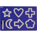 Piste graphique formes figuratives. Ce matériel en bois verni permet le travail sur la reconnaissance des 6 formes figuratives simples par le toucher en creux puis avec le stylet. Le stylet se range dans le socle. L/l/ép. socle : 30 x 20 x 1,5 cm. L/Ø stylet : 8 x 1 cm. Dès 3 ans.