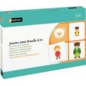 Jouons avec Boucle d''or. Permet de combiner des activités multiples autour du critère de la taille avec les jeunes enfants. La boîte contient 6 planches d’activités en carton recto verso (23 x 23 cm), 37 jetons en carton (10 x 10 cm), 2 dés en bois : 1 dé des personnages et objets 1 dé des tailles (côté dé : 2,5 cm) et 1 livret pédagogique. Dès 3 ans.