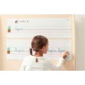 Lot de 2 bandes lignées magnétiques. 2 bandes lignées magnétiques avec illustration et code couleur pour repérer facilement les lignes. Chaque bande lignée comporte une illustration et un code couleur pour repérer facilement les lignes : feu, terre, herbe et ciel. Ce code couleur est utilisé par de nombreux professionnels (ergothérapeutes, enseignants) afin de faciliter l''entrée dans l''écrit par la verbalisation du tracé (les grandes boucles montent jusqu''au ciel...). Très pratiques, elles sont repositionnables sur toute surface lisse ! S''utilise avec des feutres effaçables à sec ou à l''eau. L/l : 80 x 25 cm. Dès 3 ans.