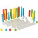 Extension pour 2 enfants pour l''atelier des cubes en rythmes 09540. Contient 4 réglettes en plastique transparent à 6 plots (23 x 4 cm), 4 socles en plastique, 120 cubes en plastique de 4 couleurs : 30 cubes rouges, 30 cubes verts, 30 cubes jaunes, 30 cubes bleus.