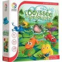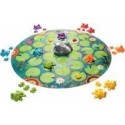 L''odyssée des grenouilles. Contenu du Jeu : plateau de jeu en carton épais (Diam 54cm) scindé en 31 nénuphars, 1 figurine de poisson « le brochet », 6 familles de grenouilles de couleurs différentes (les parents et 3 enfants). But du jeu : Aidez vos grenouilles à traverser l’étang et empêchez les autres joueurs de faire de même. Le premier joueur à amener sa famille de l’autre côté remporte la partie. Le brochet est là pour empêcher que tout ce passe sans encombre. A partir de 6 ans De 2 à 6 joueurs Durée de la partie 20 minutes