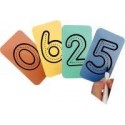 30 cartes les chiffres à tracer. Contenu de la boîte : 30 plaques en PVC translucide coloré 16x9cm, souple et résistante numérotées de 0 à 9 en 3 exemplaires. Adaptées aux feutres effaçables à sec. But du jeu : L’enfant suivra les indications formées par les flèches pour se perfectionner sur l’écriture des chiffres. A partir de 4 ans