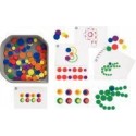 Boite de 144 jetons + 25 cartes. Contenu de la boîte : 25 cartes recto/verso 17.5x11.5cm numérotées avec des défis à réaliser, 144 jetons de 2 tailles différentes et 6 couleurs et un plateau de rangement. But du jeu : L’enfant choisit une carte modèle et après l’avoir étudié la reproduit avec les jetons Intérêts Pédagogiques : Observation, manipulation et réflexion A partir de 3 ans