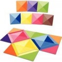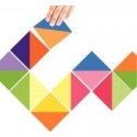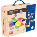 Domino créatifs 35 pièces. Contenu de la boîte : 28 dominos en carton épais (9x9cm) bicolores et 7 pièces appelées « diamants ». But du jeu : Les dominos sont mélangés et répartis, tour à tour les joueurs placent au centre de la table en faisant correspondre la bonne couleur aux extrémités du domino. Le premier joueur qui a placé l’ensemble de ses dominos remporte la partie. Une variante est proposée avec les pièces « diamants » pour complexifier la partie. Intérêts Pédagogiques : développe l’attention et l’observation A partir de 3 ans