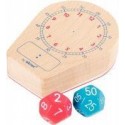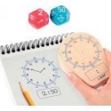Maxi tampon l''heure + 2 dés. Contenu de la boîte : 1 maxi tampon en bois 8.5cm, 1 dé rouge 12 faces (les heures) et 1 dé bleu 12 faces (les minutes). But du jeu : Après avoir appliqué le tampon sur une feuille de papier, l’enfant lance les 2 dés. A l’aide d''un crayon il dessinera le résultat des 2 dés et exprimera oralement l’horaire. Intérêts Pédagogiques : consolide l’apprentissage de l’heure A partir de 4 ans