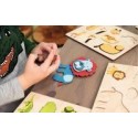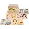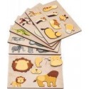 Coffret de 6 puzzles magnétiques, les animaux sauvages. Série de 6 plateaux avec 6 puzzles 3D sérigraphiés de 5 à 9 pièces magnétiques en bois épais. Un jeu d’association, de logique, de créativité et d’imagination pour décomposer, assembler, superposer les pièces et reconstituer les animaux en 3D. Les pièces sont imprimées recto/verso, une face avec des couleurs réalistes et l’autre face avec des couleurs originales pour créer des animaux fantastiques ! A assembler librement sur un tableau blanc, une ardoise ou le chevalet magnétique code 11985 vendu séparément. Après avoir joué, l’enfant range le tout dans le coffret en bois robuste. Dimensions de la boite : L.29,5 x l.21 x H.7 cm. Dimensions d’un plateau : L.24 x l.18 x ép.0,5 cm. Dès 3 ans.