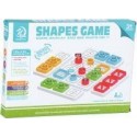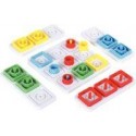 Le jeu des formes. Contenu : 1 grande base en plastique 16x6cm, 4 petites bases en plastique 16x6cm, 36 pièces (12 carrés, 12 cercles, 12 triangles. But du jeu : sur le même principe que le jeu du morpion, il faut aligner 3 pièces de la même couleur, ou de la même forme pour gagner la partie. Plusieurs variantes de jeux. Intérêt pédagogique : Améliore la coordination œil-main, développe la concentration. A partir de 3 ans. De 2 à 4 joueurs.