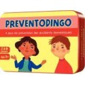 Préventodingo. Contenu : 48 jetons en carton épais _6cm, 1 guide avec 4 règles de jeu dans une boîte métallique. But du jeu : 4 jeux progressifs 3/5A et 5A+ sous forme de mémos et de questions très ludiques pour éviter les 24 accidents les plus fréquents à la maison. Les enfants échangent entres eux. Intérêt pédagogique : sensibilisation des enfants aux risques ménagers A partir de 3 ans De 2 à 8 joueurs