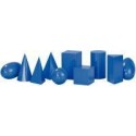 Lot de 10 solides géométriques, gamme économique. Matériel de manipulation constitué de 10 solides géométriques 3D en bois laqué et brillant de couleur bleu : un cylindre, un cube, un ellipsoïde, un cône, une boule, une pyramide à base carrée, une pyramide à base triangulaire, un ovoïde, un parallélépipède rectangle, et un parallélépipède triangle. Initiation à la géométrie. L''enfant apprend à comparer différentes formes en 3D. Favorise la concentration, la coordination et la résolution de problèmes. Hauteur des pièces : 10 cm Dès 6 ans.