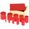 Les cylindres de couleurs, gamme économique. Ensemble de 4 séries de 10 cylindres en bois laqué et brillant de 4 couleurs assorties (bleu, jaune, rouge , vert) rangées chacune dans une boite en bois avec couvercle de la couleur des cylindres. Matériel qui constitue l''étape finale dans la compréhension des dimensions. L''enfant ordonne les séries de cylindres selon ses capacités à distinguer hauteurs, diamètres et couleurs. Dimensions d’une boite : L. 13 x l. 15,5 x H. 7 cm. Dès 3 ans.