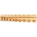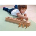 Lot de 4 blocs des cylindres, gamme économique. 4 Blocs en bois naturel verni contenant chacun 10 cylindres en bois avec''un bouton de préhension. Matériel d''initiation à la discrimination visuelle des dimensions., L''enfant apprend à classer les cylindres en fonction de leurs caractéristiques (diamètres & hauteurs). Série 1 à 4 de difficulté progressive.: les cylindres varient en hauteur et/ ou en diamètre selon la série. Dimensions d’un bloc : L. 49 x l. 6,5 x H. 6,5 cm. Dès 3 ans.