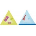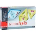 Schubitrix les chiffres. Contenu : 18 dominos recto/verso à 3 côtés en carton épais, 1 règle du jeu. But du jeu : Se joue selon les règles du domino. Chacun leur tour les enfants posent une carte. Celle-ci doit correspondre par le chiffre et la couleur, ou par les points et la couleur. Le gagnant est celui qui s’est débarrassé de toutes ses cartes. Intérêt pédagogique : Apprentissage et associations des chiffres. A partir de 5 ans. De 1 à 4 joueurs.