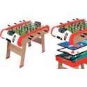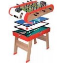 Babyfoot 4 en 1. Au design moderne, ce babyfoot se décline en billard, ping-pong et hockey. Permutation facile entre les différents jeux. Très stable et robuste, tous les accessoires nécessaires sont inclus : balles en liège, boules de billard, queues de billard, craies, raquettes et balle de ping pong, et lanceurs pour la partie de hockey. Dimensions (LxlxH) : 120 x 90 x 86 cm Poids : 39kg A partir de 8 ans. Garantie 2 ans