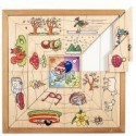Plateau 17 pièces les 4 saisons. Cadre en bois de 40.5x40.5cm, comprenant 17 pièces à repositionner. Thèmes les saisons. En se basant sur l’araignée au centre, l’enfant reconstitue l’encastrement en faisant attention de positionner correctement les pièces. Système d’autocorrection au centre du plateau. A partir de 3 ans