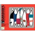 Sardines. Contenu : 10 cartes boite à sardines 14x10.5cm, 40 cartes 7x10.5cm, 1 règle du jeu. But du jeu : Les enfants disposent de quelques secondes pour observer les sardines dans la boite, puis ensuite regarder dans leur jeu s’il retrouve les sardines. Intérêt pédagogique : développe l’observation, la concentration, et la mémoire. De 2 à 4 joueurs Durée de la partie : 15 minutes A partir de 5 ans