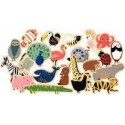Boite de 36 magnets en bois les animaux. Lot de 36 magnets Animaux (animaux ferme, zoo, jardin et forêt) réalisés en bois sérigraphié de toutes les couleurs. Livrés dans une boite de rangement aimantée. Dimensions des pièces (L x H) : 6,5 x 5,8 cm environ. Dès 2 ans.