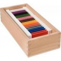 Boite de 22 tablettes de 11 couleurs. Boite en bois naturel verni avec couvercle contenant 22 tablettes colorées soit 11 paires de couleurs différentes: bleu, rouge, jaune, violet, orange, vert, marron, rose, noir, blanc et gris. Après l''utilisation de la boite n°1 code 15440, l''enfant découvre dans cette boite n°2 les couleurs complémentaires et tertiaires et apprend le nom et le vocabulaire des couleurs. Dimensions de la boite : L. 21 x l. 9 x H. 5 cm. Dès 3 ans.