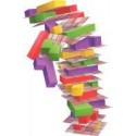 Crazy Tower. Contenu du Jeu : 28 blocs de bois (7 de chaque couleur), 21 cartes étage et 1 livret de règles. But du jeu : l’enfant choisit une carte étage et la place au centre de la table. Il devra construire une structure stable en traversant tous les aléas possibles afin que la tour ne s’effondre. Intérêts Pédagogiques : En mode solo ou à plusieurs la dextérité et le sens de l’observation sera déterminant. A partir de 8 ans De 1 à 4 joueurs Durée de la partie : 15 minutes