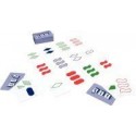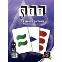 Set. Contenu de la boîte : 60 cartes illustrées recto/verso (11x11 cm) et une notice de jeu. Le but du jeu consiste à observer les cartes exposées sur la table pour être le plus rapide à identifier un SET. Chaque carte représente des symboles qui combinent 4 caractéristiques : couleur, forme, nombre et remplissage. A partir de 6 ans. De 1 à 20 joueurs Durée de la partie : 30 minutes