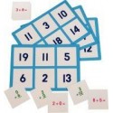 Le Loto des additions. Contenu du jeu :- 4 plaques de loto en plastique sérigraphié et lavable sur lesquelles sont imprimés les résultats díune addition.- 24 cartes de jeu proposant sur une face une addition en ligne (en rose) et sur líautre une addition posée de façon traditionnelle (en vert). - une notice pédagogique.Intérêt Pédagogiques : Initier les enfants au calcul mental avec un jeu très simple et amusant.De 1 à 4 joueurs