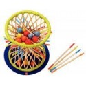Jeu pallina. Contenu : 1 réceptacle en bambou, 20 baguettes en bambou de 4 couleurs, 16 billes en bois de 4 couleurs, 1 tapis de jeu. But du jeu : L''enfant retire l''une de ses baguettes de bois et essaie de faire tomber les billes des autres joueurs sur le tapis jusqu''à ce qu''il ne reste plus qu''une bille afin de déterminer le gagnant. Intérêts Pédagogiques : Anticipation, réflexion et stratégie tout en s''amusant. De 2 à 4 Joueurs. Durée de la partie 5 à 10 minutes. A partir de 3 ans.(label ECO-DESIGN)