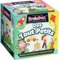 BrainBox - des tout petits. Contenu : 55 cartes, 1 sablier, 1 dé et une règle de jeu. But du Jeu : Avec BrainBox des tout petits, les enfants observent une carte pendant 10 secondes puis répondent à une question indiquée par le dé. Si la réponse est bonne la carte est gagnée ! Chaque carte représente des animaux dans leur milieu naturel ou des scènes de la vie quotidienne. Un excellent moyen de développer sa mémoire et ses connaissances ! A partir de 2 joueurs A partir de 4 ans.
